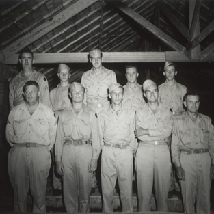 Back Row, Left to Right: PVT Reginald W. Gauger, PVT Edward R. Barker, PFC Stallerd D. Mikell, PFC John G. Azzato, PVT George F. Hoye, CPL Edward M. Curley